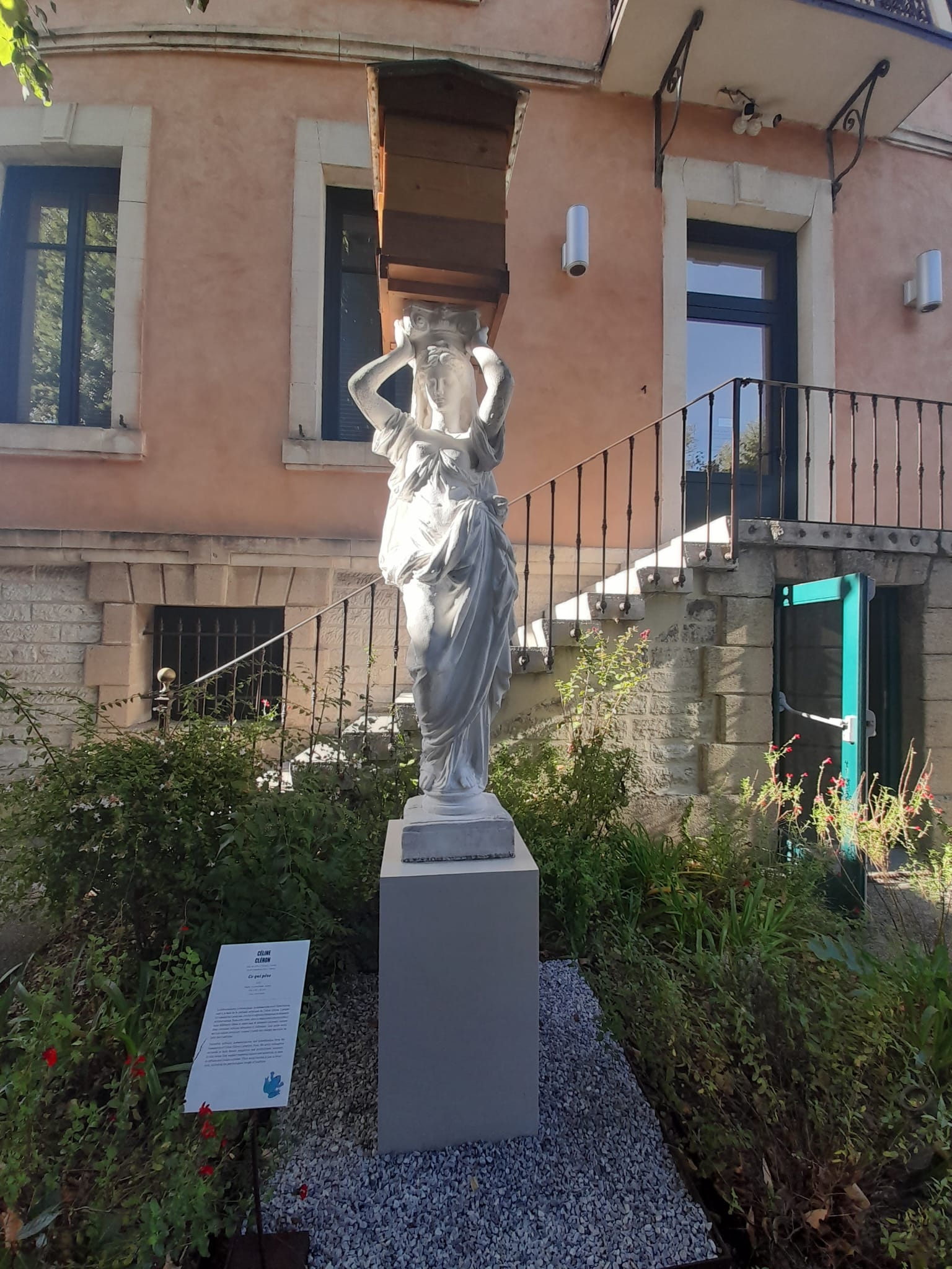 Quatre statues de femmes, se trouvant aux quatre coins extérieurs de la maison. Elles portent le poids, référence aux différents poids que chaque femme porte chaque jour à travers le monde. La charge mentale, le poids professionnel pour certaines, le poids familial, le poids personnel, le poids transgénérationnel, le poids social, le poids de l’inquiétude,…